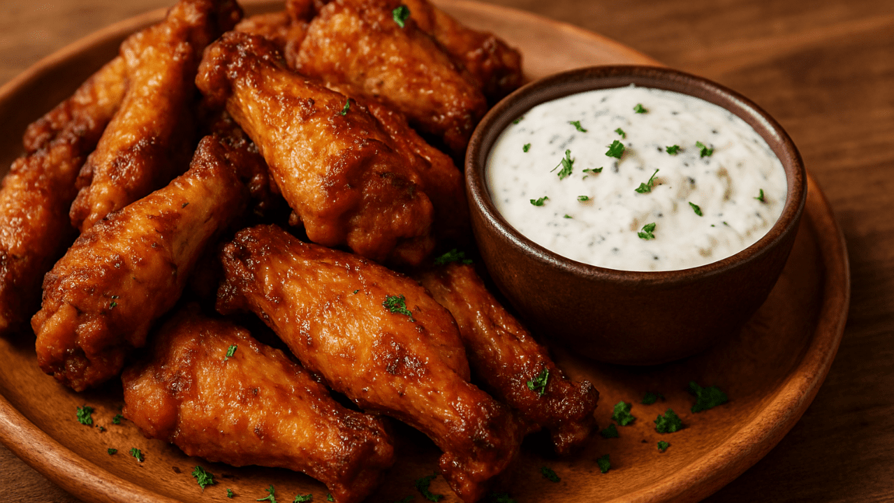 Asas de frango crocantes com molho ranch de queijo 🍗🔥