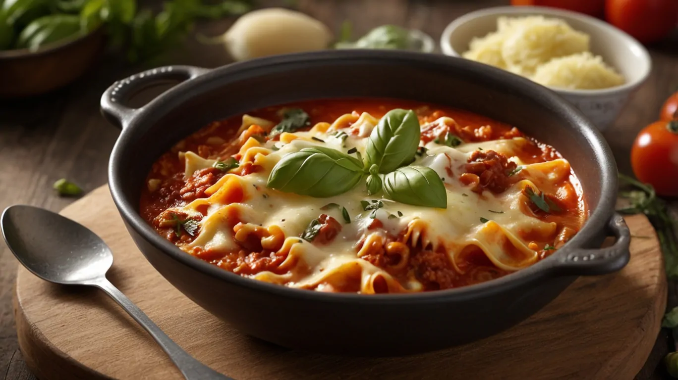 A Lasagna Soup é uma mistura reconfortante que combina os ingredientes clássicos da lasanha – massa, molho de tomate, queijo e carne moída – com a praticidade de uma sopa. Ela é perfeita para os dias mais frios ou para quando você deseja uma refeição que seja ao mesmo tempo leve e cheia de sabor.